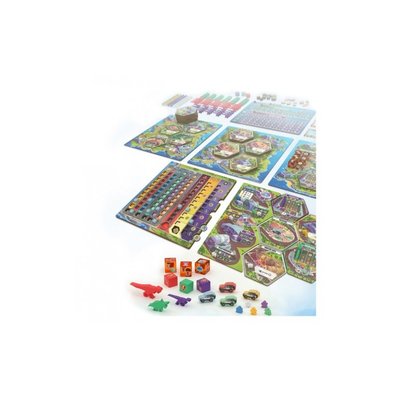 Dinosaur World es un juego de mesa con el que los dinosaurios vuelven al mundo gracias a la ciencia. Los nuevos parques surgen con regularidad, y a menudo comienzan a funcionar incluso antes de que estén completamente finalizados. Gestiona tu parque de dinosaurios para que sea el más exitoso de esta era ¡y cuidado con que no se coman las atracciones a los visitantes!