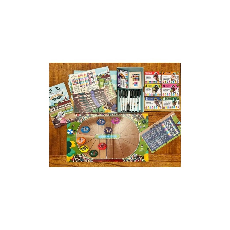 Durante la partida podrás comprar caballos, hacer apuestas, influir en el movimiento de la carrera y utilizar habilidades especiales. La tirada de dados determina qué caballos se mueven y las opciones disponibles en cada turno, así que prepárate para adaptar tus planes. Una vez que tres caballos cruzan la línea de meta, se totalizan las ganancias.