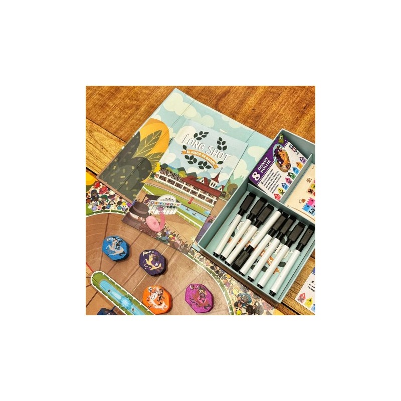Long Shot es un juego de mesa en el que tendréis que trazar estrategias y tentaréis a la suerte mientras se desarrolla la acción en una tensa carrera de ocho caballos. ¡Todos al hipódromo!