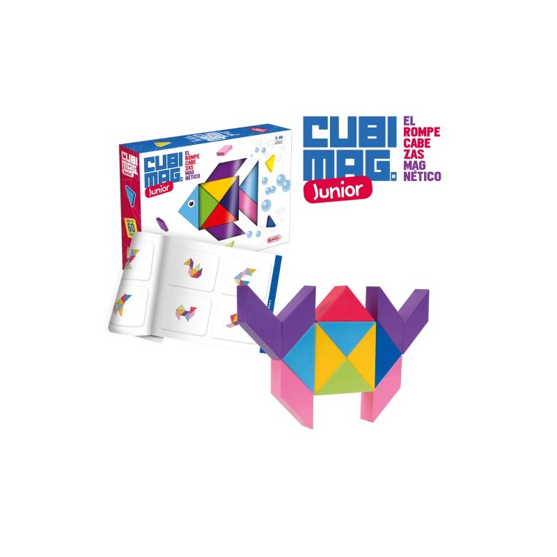 Cubimag Junior es un juego de mesa para niños en donde pondrás a prueba tu mente con este rompecabezas magnético. Resuelve hasta 60 retos y entrena la visión espacial, la concentración y la lógica.