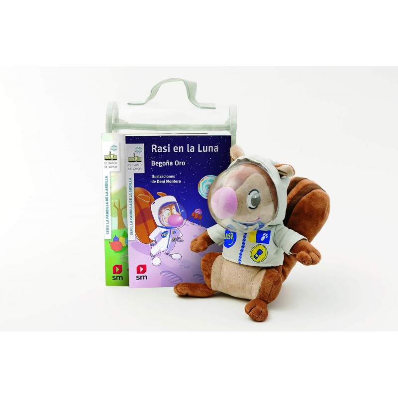 Un pack con dos títulos de La pandilla de la ardilla: "Rasi en la Luna" y "Una fiesta (casi) perfecta", y además, un muñeco de Rasi (disfrazada de astronauta), la mascota que siempre acompaña a la pandilla en todas sus aventuras.