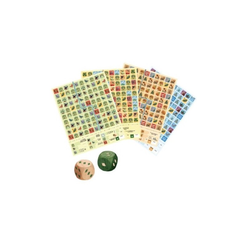 Las diferentes reglas te guiarán en tus posibilidades durante la partida. Los números de los dados revelan la longitud de los lados del área marcada en la hoja de juego. En esta área se selecciona un símbolo del bosque que se incluye en la puntuación. Gana quien consiga más puntos.