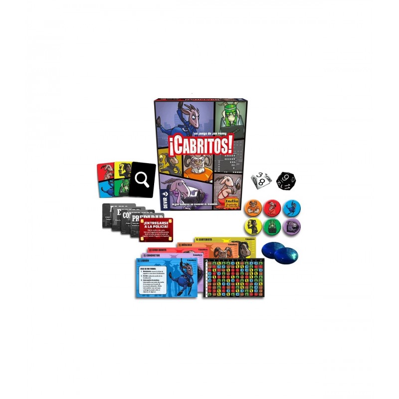 Cabritos es un juego de cartas en donde todos en la mesa están tratando de culpar al mismo jugador por un crimen, todo mientras ese jugador no tiene idea de que está tomando la culpa.