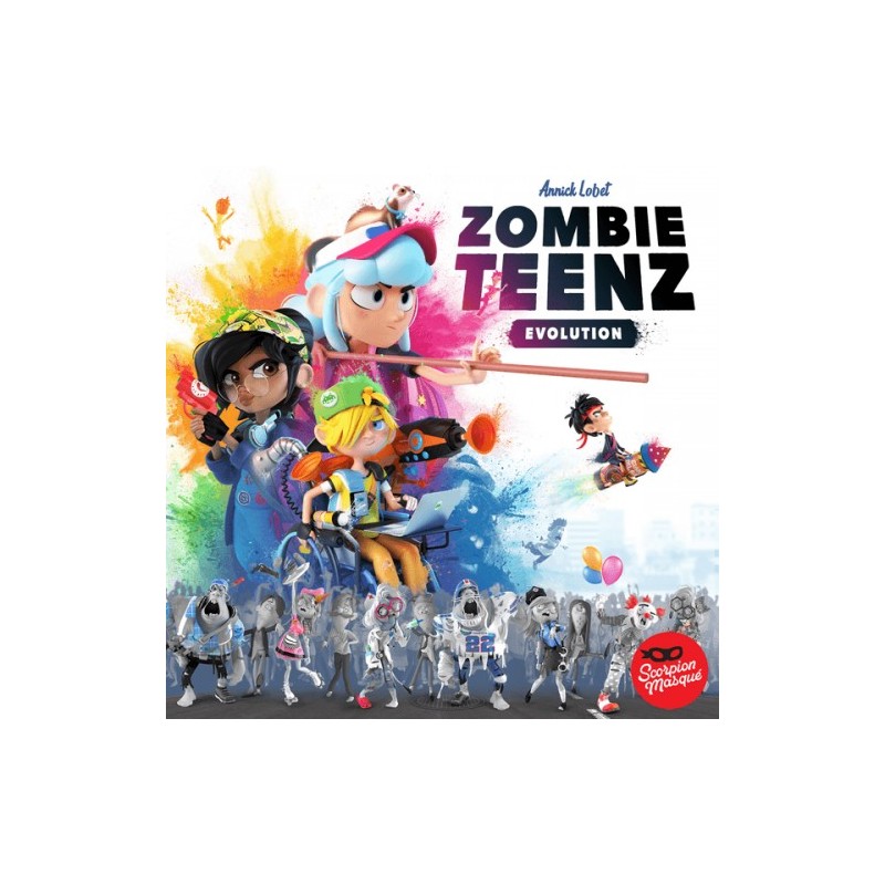 Zombie Teenz Evolution es la secuela de Zombie Kidz Evolution (juego infantil nº 1 en BGG). Es un juego independiente con un conjunto diferente de reglas, por lo que no es necesario haber jugado al primer juego para saltar al segundo. Las reglas son un poco más avanzadas y requieren un poco más de pensamiento estratégico.