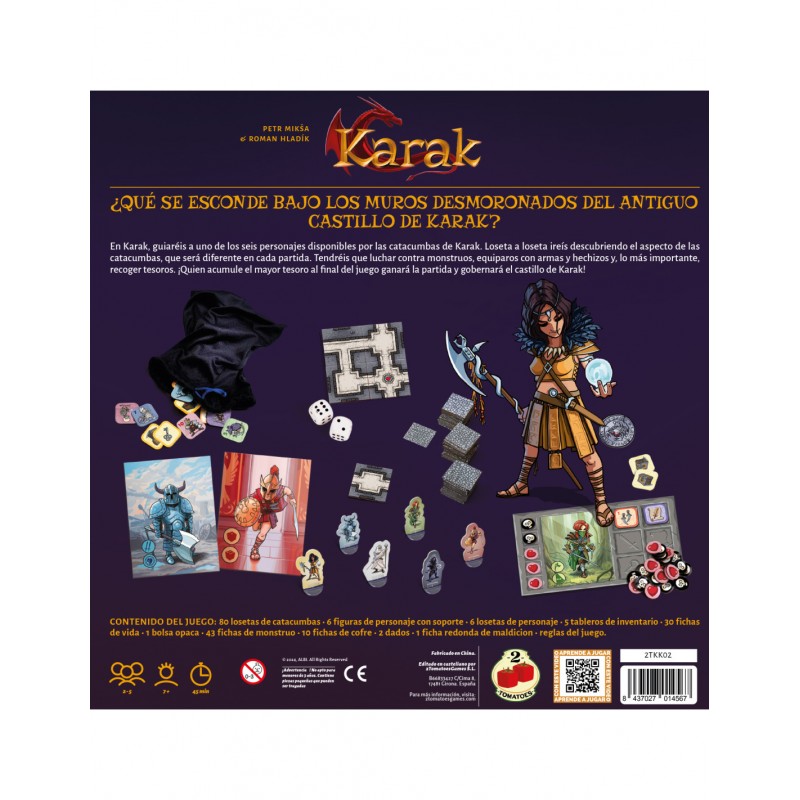 Karak es un juego de mesa donde cada jugador conducirá a unos de los seis diferentes personajes al interior del laberinto de Karak.