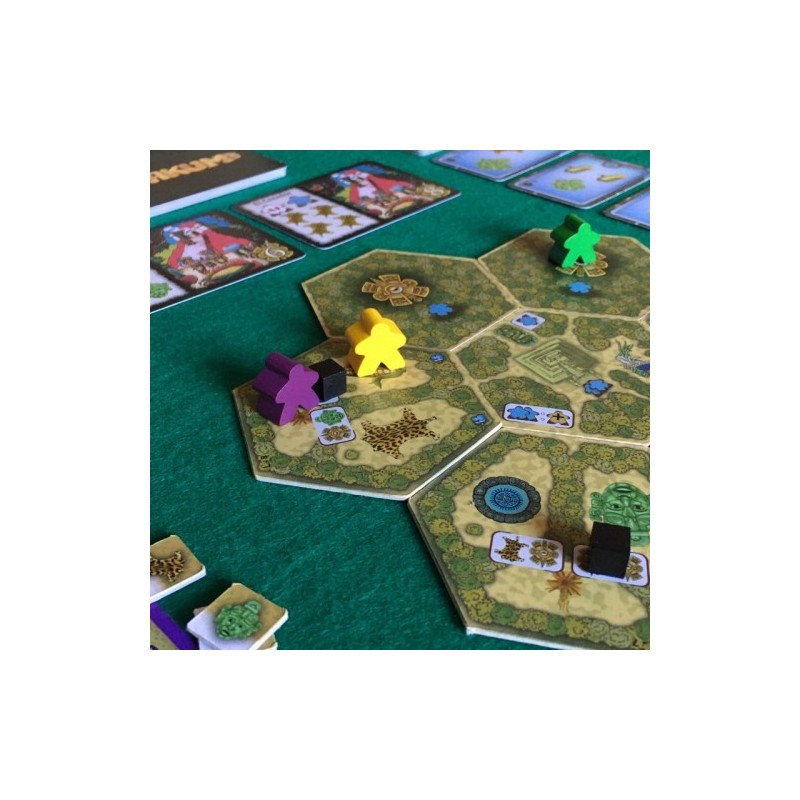 Nakum se juega en un tablero construido con losetas al azar, por lo que cada partida será diferente. En el transcurso del juego tendrás que explorar estas zonas, recolectar recursos y decidir qué acciones realizas, pues se agotan las opciones sobre el tablero.