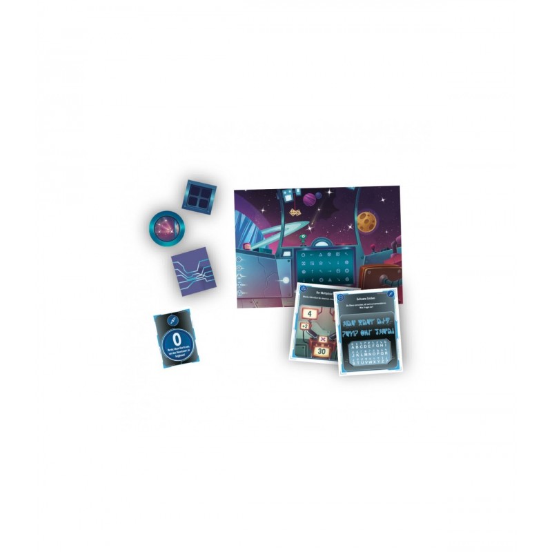Un entretenimiento único y una aventura a base de enigmas que agudizan el ingenio y desarrollan la lógica, el pensamiento matemático, la capacidad de observación y el lenguaje. Cada carta esconde una pista para continuar la aventura e intentar completar el viaje en el espacio. Incluye una baraja de cartas con enigmas, un tablero y objetos útiles para encontrar las pistas.