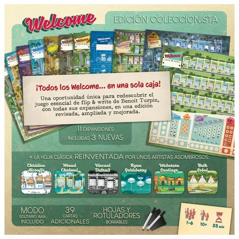 Welcome Hacia el Perfecto Hogar - Edición Coleccionista es un juego de mesa con el que tendrás la oportunidad única de redescubrir el juego esencial de los flip & write en una edición revisada, ampliada y mejorada con todas sus expansiones. ¡Combina de la forma más inteligente los números de las casas con sus efectos para convertirte en el arquitecto más grande!