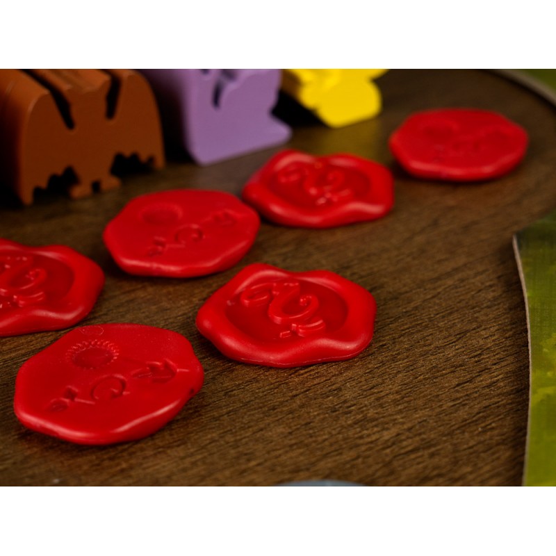 Utilizando las nuevas fichas de «ocupado» doradas, estas cartas se pueden combinar con las cartas del juego base para crear nuevas y apasionantes sinergias. Las cartas de visitante añaden una nueva manera de obtener puntos al final de la partida y los billetes y fichas de reserva hacen que el momento de tomar decisiones sea más crítico que nunca.