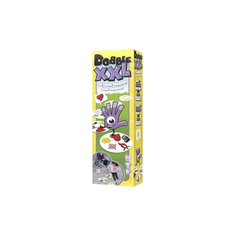 Eso es lo que te trae el nuevo juego de mesa Dobble XXL, ya no sólo cuentan tus reflejos en las manos, debes saltar sobre las cartas gigantes y como siempre ¡Ser el primero en encontrar los símbolos repetidos!