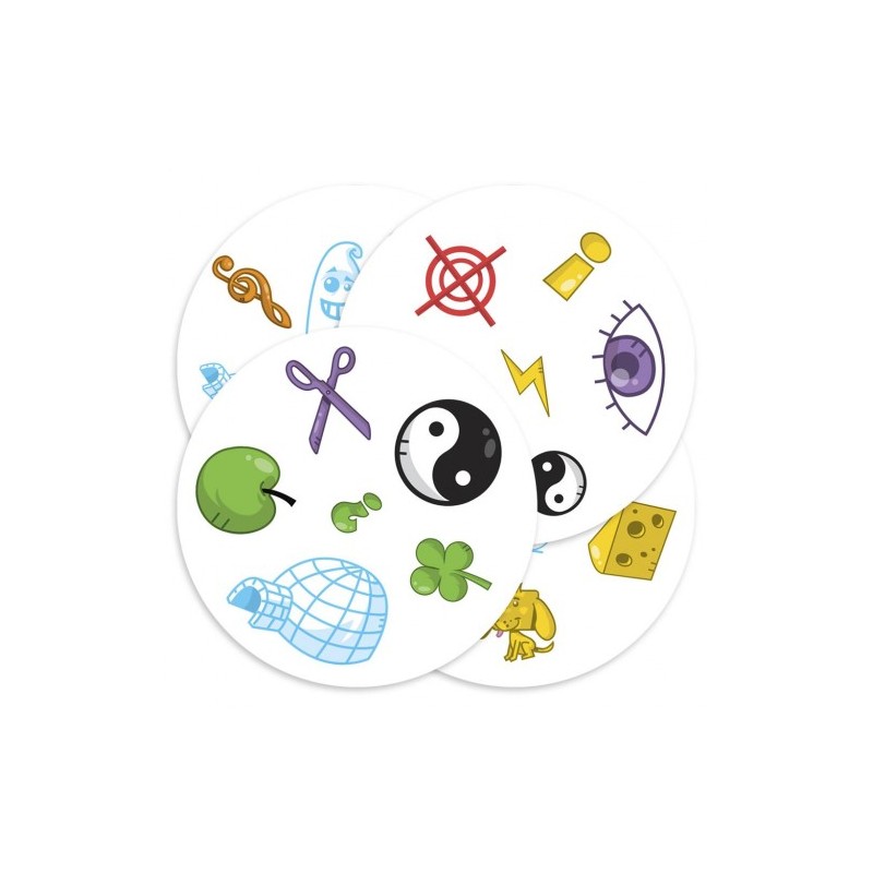 Dobble es un juego con más de 50 símbolos. Cuenta con 55 cartas y solamente un símbolo idéntico entre cada carta. ¿Serás capaz de descubrirlo?