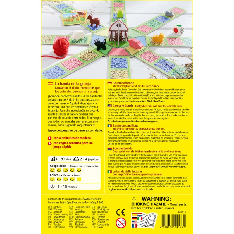 La Banda de la Granja es un juego de mesa para niños de Haba en donde los jugadores deberán de ayudar a los jóvenes residentes de la granja a regresar a su establo con la ayuda de los dados.