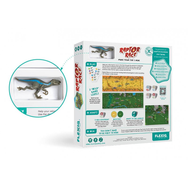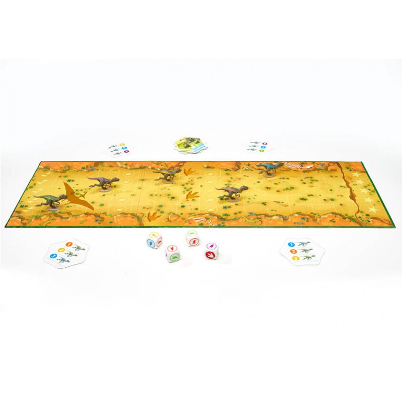 Raptor Race es un juego de mesa para niños donde los dinosaurios más rápidos compiten por la victoria. Construye tu camino, supera los obstáculos y sé el primero en cruzar la línea de meta.