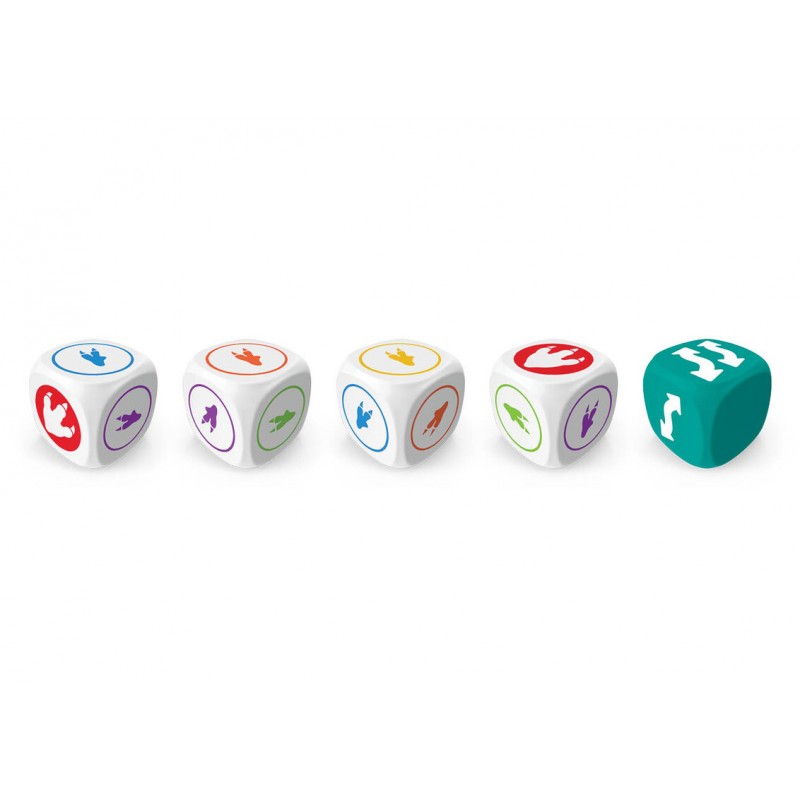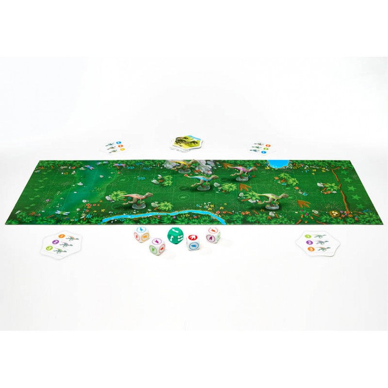 Usa los dados con astucia e intenta colocar a tus dinos en las posiciones óptimas. Haz que el T-Rex asuste a los demás raptores y los haga retroceder. Usa los propulsores con táctica para hacer avanzar a otros raptores más rápido y utiliza el dado de flechas para adaptarte a la jungla y mover a los raptores en diagonal para evitar obstáculos.