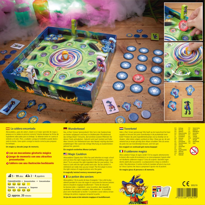La caldera encantada es un juego de mesa para niños de Haba en donde deberán preparar sus pócimas en base a los símbolos y los colores. Gana quien consiga la mezcla correcta para preparar los brebajes.
