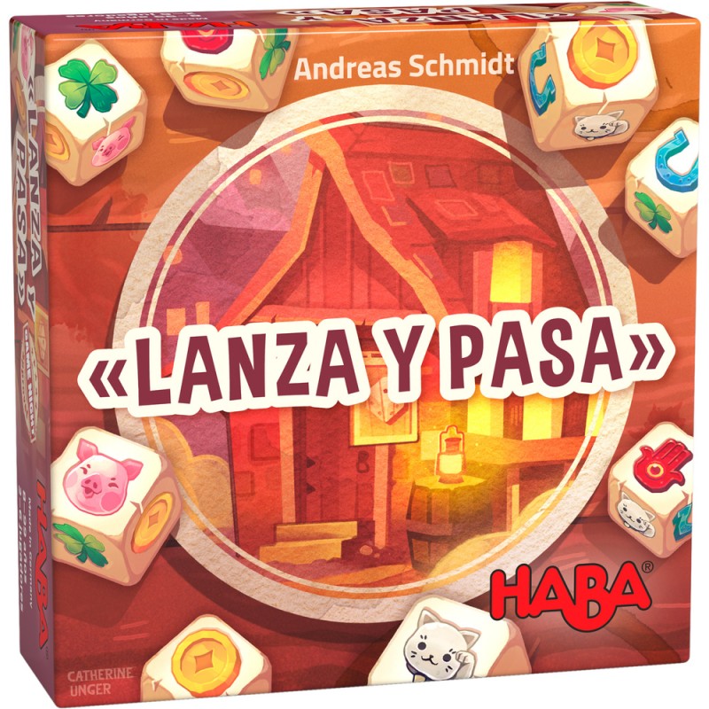 Lanza y pasa es un juego de dados para niños de Haba en donde el jugador que, con suerte al lanzar el dado, rapidez y buen ojo, consiga el mayor número de posavasos, gana la partida e invita a la siguiente ronda.