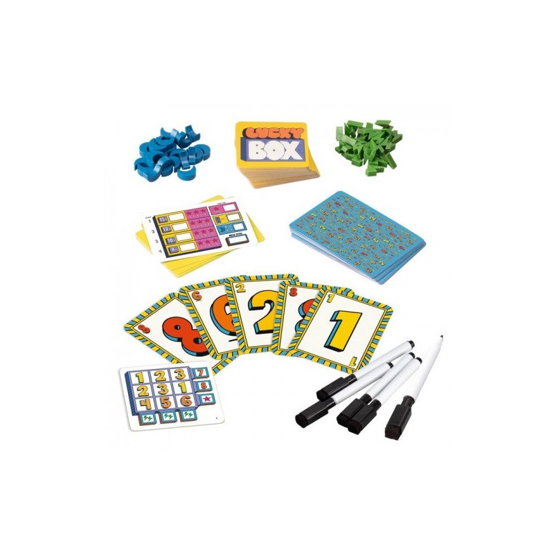 Super Mega Lucky Box es un juego de mesa con el que toda la familia se lo pasará en grande. Revela los números uno a uno y táchalos en tus súper cartas. Consigue tres en una fila para desbloquear premios, que te ayudarán a tachar más cuadrados y aumentar tu puntuación. ¿Quién conseguirá el Mega Total más grande? Ganar requiere un poco de estrategia ¡y un poco de súper mega suerte!