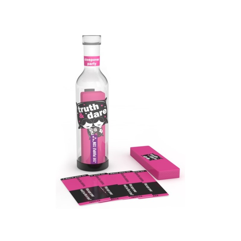 ¿Os atrevéis a pasar un rato de los más divertido poniéndoos a prueba unos a otros? Sacad las cartas de la botella y colocadlas en una pila. Ahora colocaos en círculo con la botella en el centro. Por turnos hacéis girar la botella y a quien apunte deberá superar un reto o decir una verdad sobre si mismo. Lo más importante es pasárselo bien en familia o amigos. Y recuerda: ¡lo que pasa en el juego, se queda en el juego! Un divertidísimo juego para disfrutar en cualquier evento familiar.